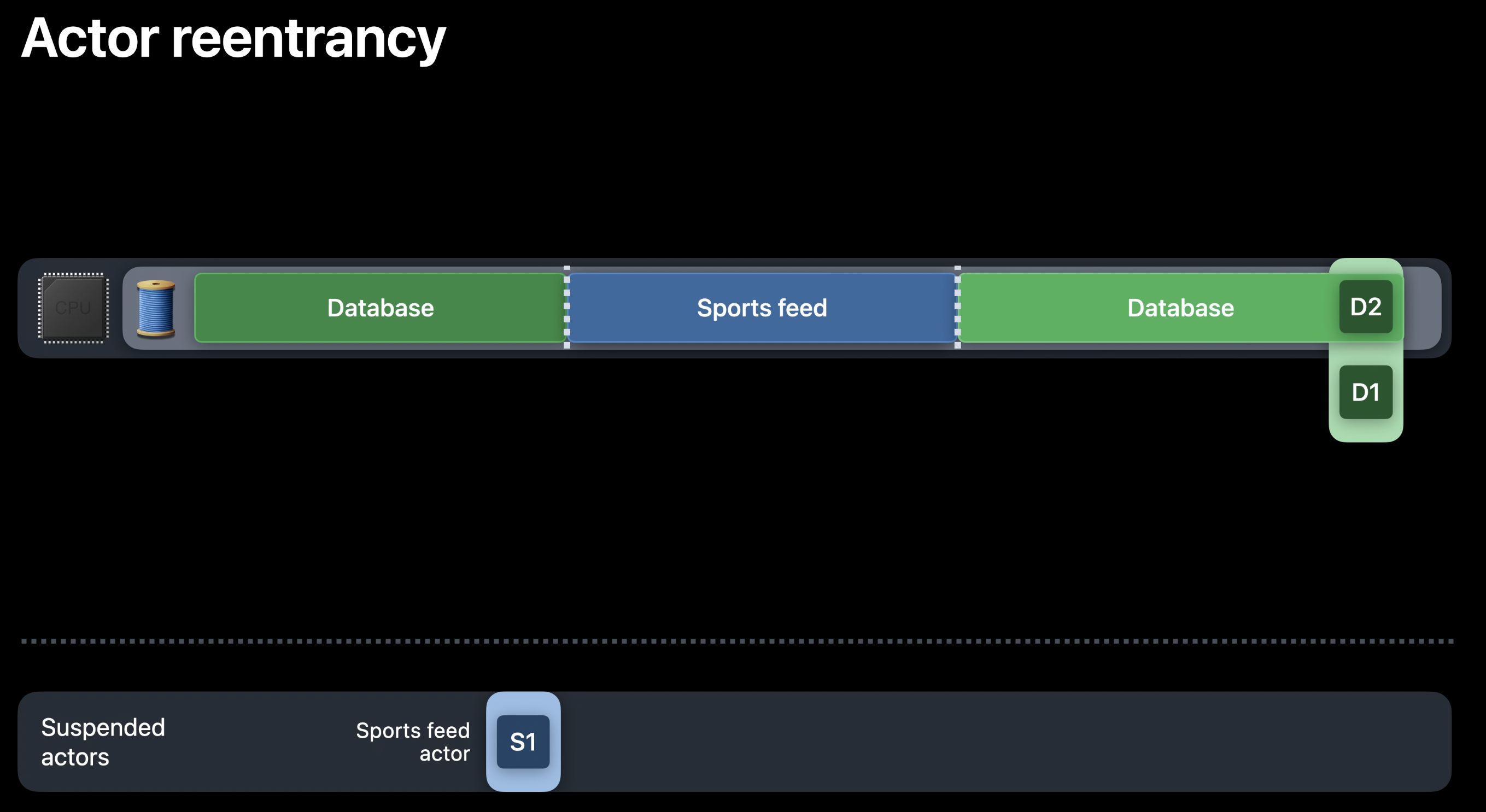 - 즉, 한 Actor에 대한 작업을 일시 중단하고 새 Actor에 대한 작업을 실행하는 경우가 Actor hopping임